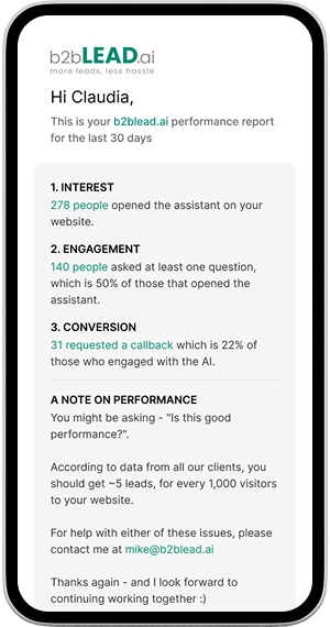 Your AI maximizes leads by suggesting RELEVANT offers and solutions that match the inquiry's context.